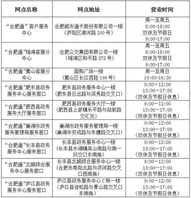 3.合肥城市通卡股份有限公司客服热线:0551--62851595(8:00-17:30)。
